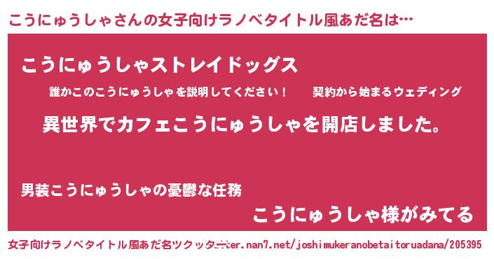 | 男性向けラノベタイトル風あだ名 | 『誰もが恐れるあのこうにゅうしゃが、ぼくの専属メイドになるようです。』 |