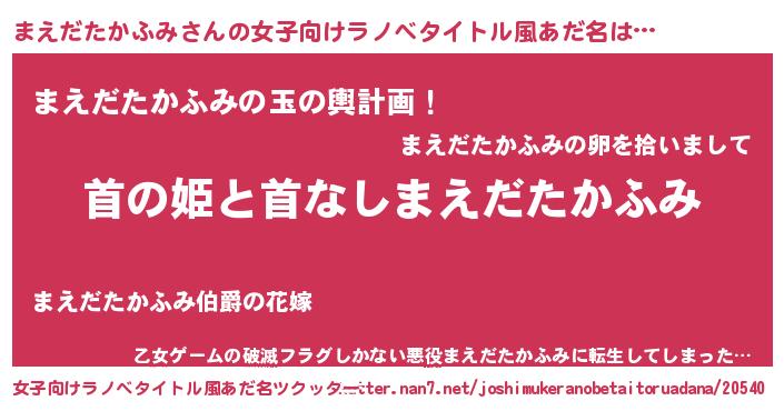 | 男性向けラノベタイトル風あだ名 | 『はたらくまえだたかふみさま!』 |
