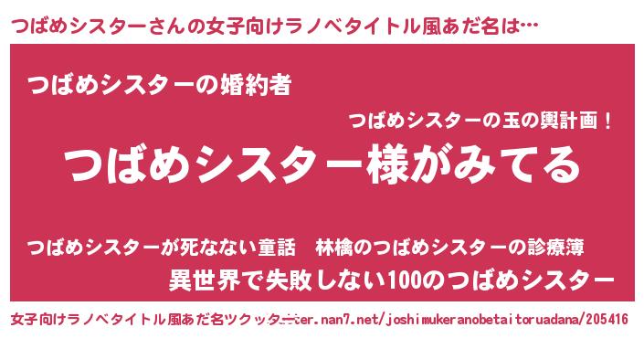 | 男性向けラノベタイトル風あだ名 | 『つばめシスターの嫁は女の子じゃないと思った?』 |