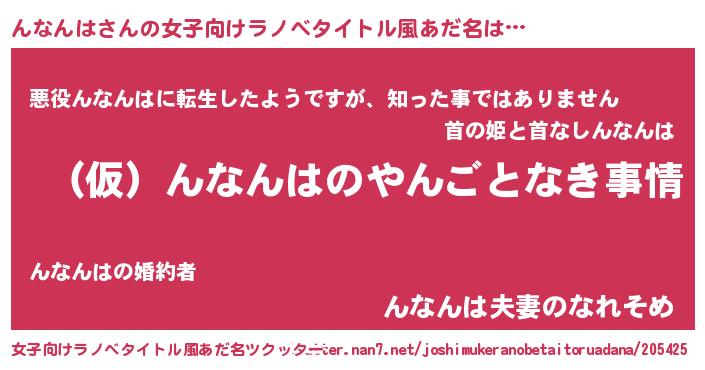 | 胡散臭い通販商品みたいなあだ名 | 『必ず成功するブレスレット…その名も「んなんは」』 |