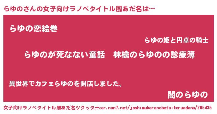 | 意味不明あだ名 | 『住所不定無職らゆの(8歳)』『自称らゆの』 |