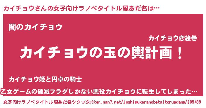 | 男性向けラノベタイトル風あだ名 | 『転生したらカイチョウだった件』 |
