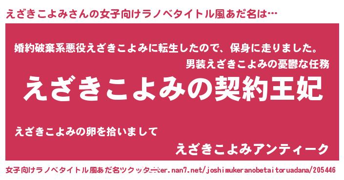 | 男性向けラノベタイトル風あだ名 | 『誰もが恐れるあのえざきこよみが、ぼくの専属メイドになるようです。』 |