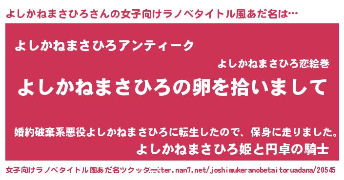 | ピコ太郎風あだ名 | 『ヨシ四郎』『ヨコ次郎』『ヨヨ太郎』 |