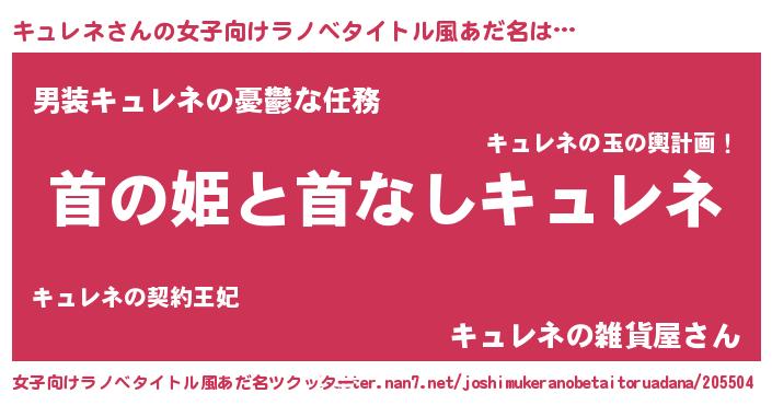 | 男性向けラノベタイトル風あだ名 | 『はたらくキュレネさま!』 |