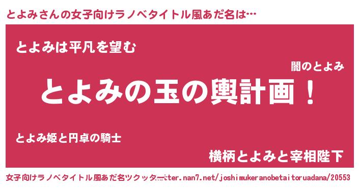 | ヒーロー風カッコイイあだ名 | 『炎刃騎士トヨ』『超時空戦士トヨミ』 |