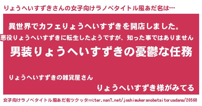 | 男性向けラノベタイトル風あだ名 | 『うちのりょうへいすずきが世界を掌握している!』 |