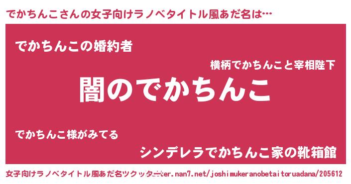 | 男性向けラノベタイトル風あだ名 | 『Re:でかちんこから始める異世界生活』 |