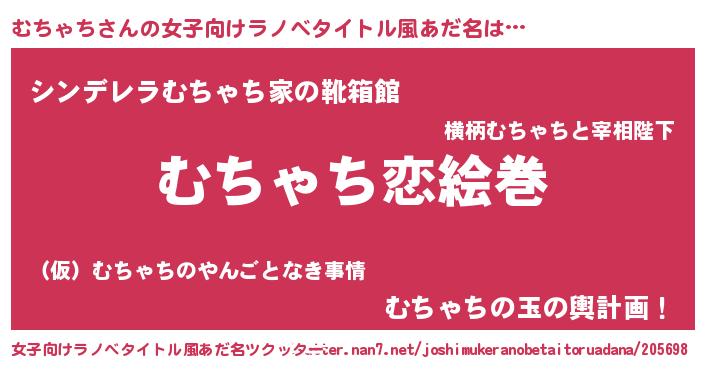| 男性向けラノベタイトル風あだ名 | 『おまえをオタクにしてやるから、俺をむちゃちにしてくれ! 』 |