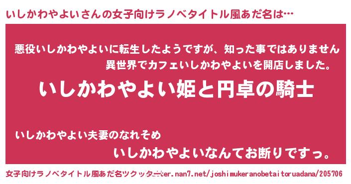 | 胡散臭い通販商品みたいなあだ名 | 『モテモテ間違いなしブレスレット…その名も「いしかわやよい」』 |