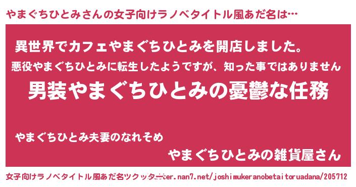 | 男性向けラノベタイトル風あだ名 | 『うちのやまぐちひとみが世界を掌握している!』 |