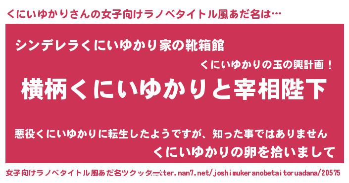 | 男性向けラノベタイトル風あだ名 | 『くにいゆかりに滅ぼされるだけの簡単なお仕事です』 |