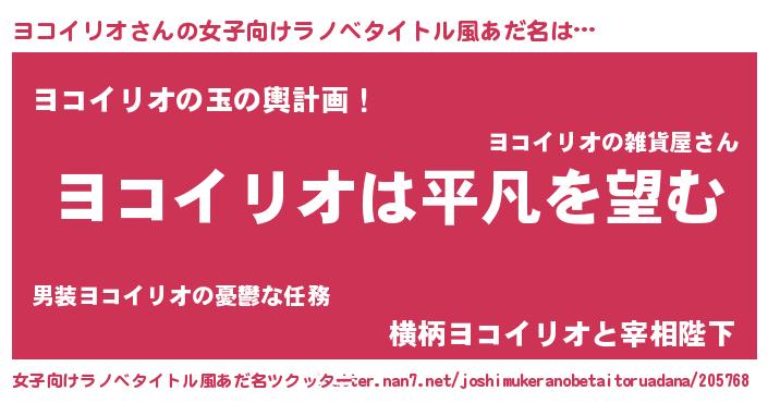 | 男性向けラノベタイトル風あだ名 | 『ダンジョンにヨコイリオを求めるのは間違っているだろうか』 |