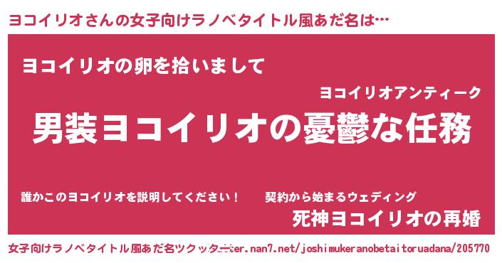 | 男性向けラノベタイトル風あだ名 | 『うちのヨコイリオが世界を掌握している!』 |