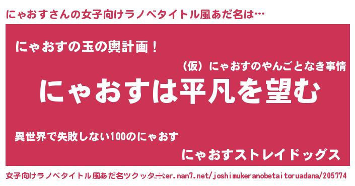 | 男性向けラノベタイトル風あだ名 | 『ダンジョンににゃおすを求めるのは間違っているだろうか』 |