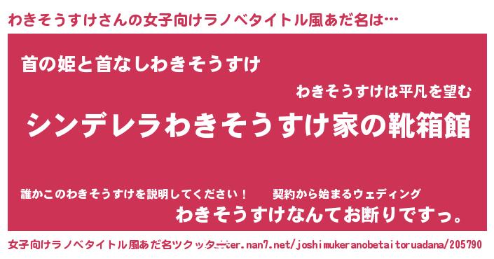 | 男性向けラノベタイトル風あだ名 | 『冴えないわきそうすけの育てかた』 |