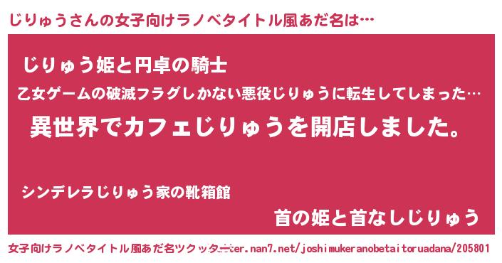 | 胡散臭い通販商品みたいなあだ名 | 『前代未聞の健康食品…その名も「じりゅう」』 |