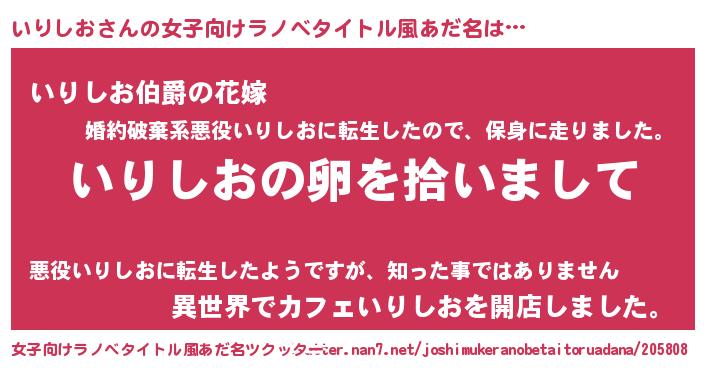 | 胡散臭い通販商品みたいなあだ名 | 『伝統あるサプリメント…その名も「いりしお」』 |