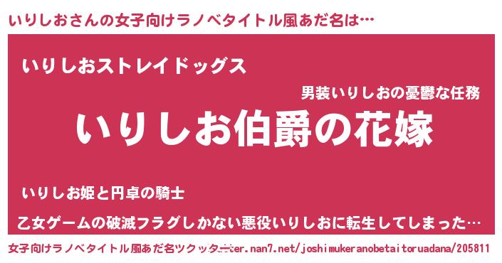 | 意味不明あだ名 | 『いりしおフォーエバー』『自称いりしお』 |