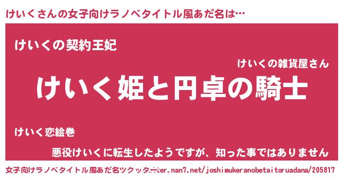 | 胡散臭い通販商品みたいなあだ名 | 『モテモテ間違いなし水晶球…その名も「けいく」』 |