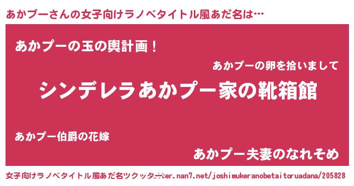 | ヒーロー風カッコイイあだ名 | 『正義の使者あかプー』『炎刃騎士アカ』 |