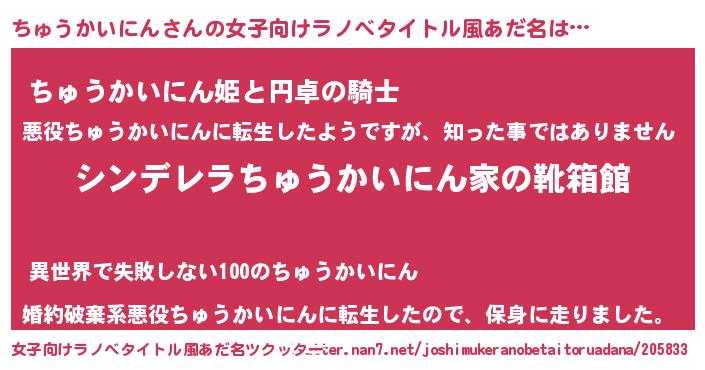 ちゅうかいにんさんの女子向けラノベタイトル風あだ名