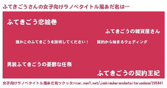 | 男性向けラノベタイトル風あだ名 | 『フテキゴウアートオンライン』 |