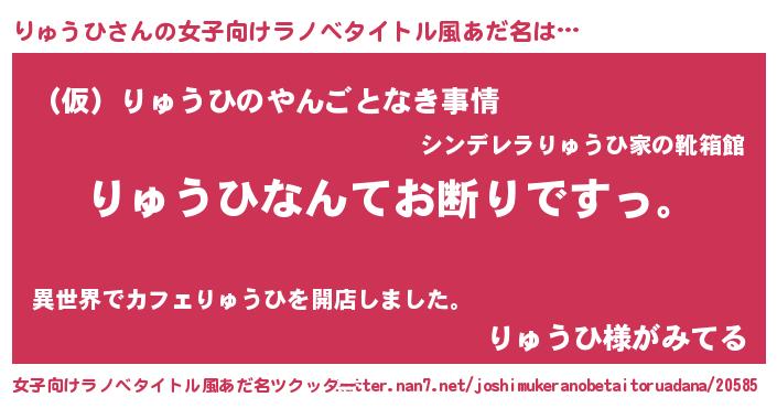 | ヒーロー風カッコイイあだ名 | 『ウルトラ戦士リュウヒ』『天弓騎士リュ』 |