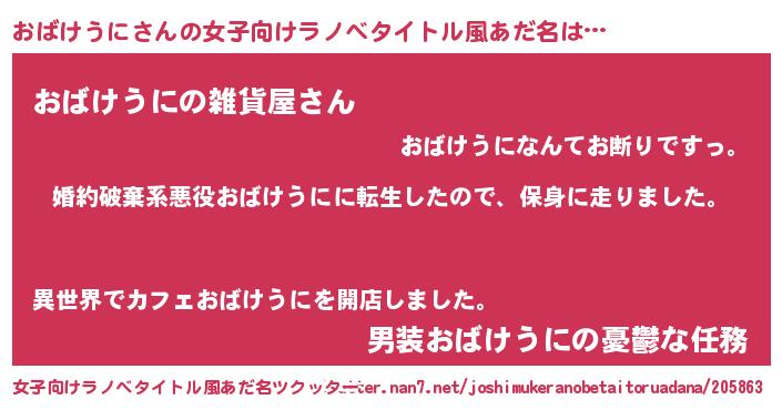 | 恥ずかしいあだ名 | 『おばっちょ』『オバケウニデラックス』 |
