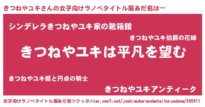| 胡散臭い通販商品みたいなあだ名 | 『信頼と実績のサプリメント…その名も「きつねやユキ」』 |