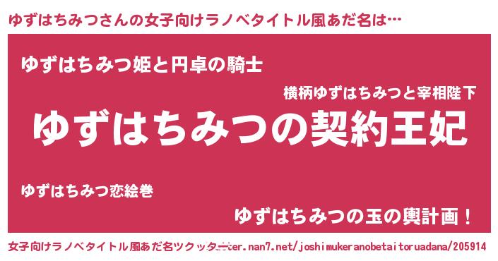 | ヒーロー風カッコイイあだ名 | 『ネオユズハチミツ』『魔戒騎士ユズ』 |