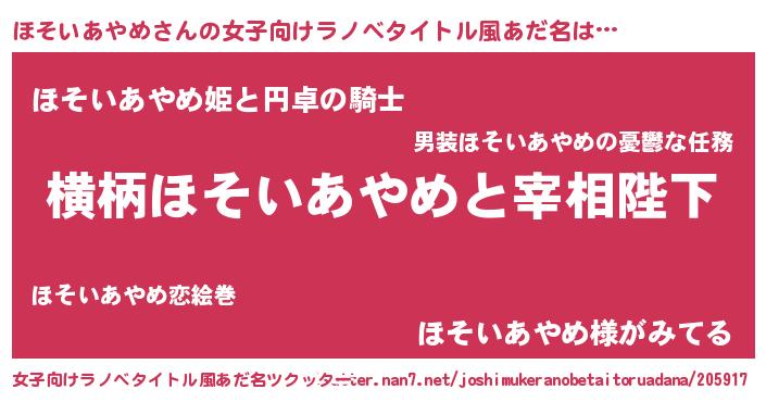 | 胡散臭い通販商品みたいなあだ名 | 『億万長者になれる霊験あらたかなお札…その名も「ほそいあやめ」』 |