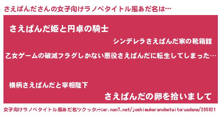 | 意味不明あだ名 | 『住所不定無職さえぱんだ(93歳)』 |
