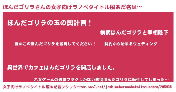 | 胡散臭い通販商品みたいなあだ名 | 『億万長者になれる霊験あらたかなお札…その名も「ほんだゴリラ」』 |