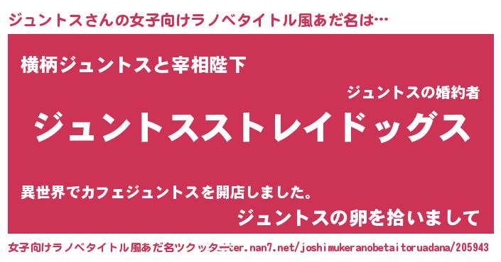 | 男性向けラノベタイトル風あだ名 | 『Re:ジュントスから始める異世界生活』 |