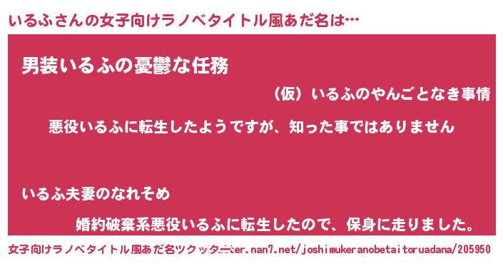 | 男性向けラノベタイトル風あだ名 | 『この素晴らしい世界にいるふを!』 |