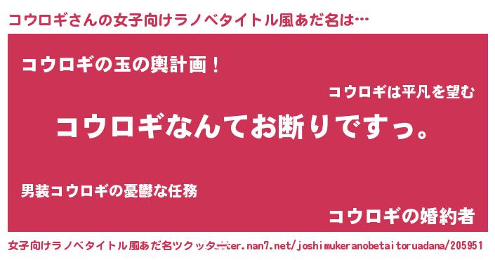 | 男性向けラノベタイトル風あだ名 | 『魔法科高校のコウロギ』 |