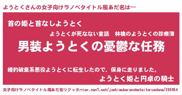 | 意味不明あだ名 | 『ペロリンようとく』『自称ようとく』 |