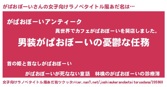 | 胡散臭い通販商品みたいなあだ名 | 『芸能人もオススメする高麗人参…その名も「がぱおぼーい」』 |