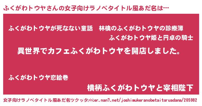 | ヘコむあだ名 | 『ふくがわトウヤ(笑)』『ふくにゅー』 |
