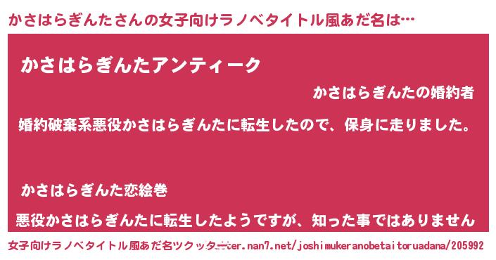 | 男性向けラノベタイトル風あだ名 | 『カサハラギンタスレイヤー』 |