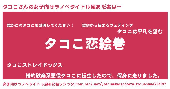 | 男性向けラノベタイトル風あだ名 | 『ノーゲーム・ノータココ』 |
