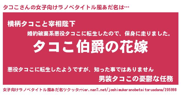 | ヘコむあだ名 | 『豆乳』『タコにー』『タコこ(笑)』 |