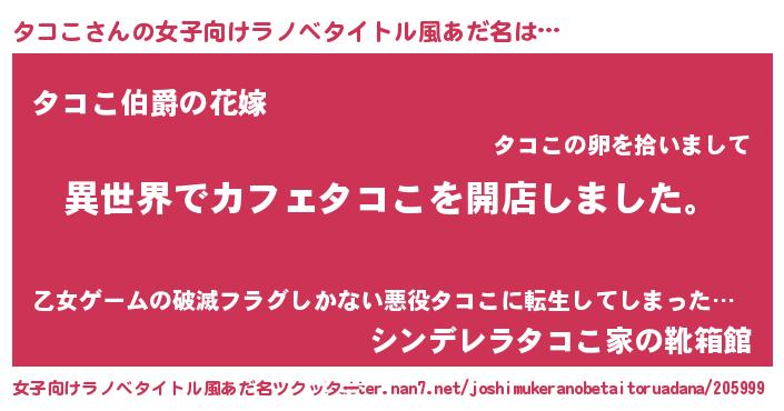 | 男性向けラノベタイトル風あだ名 | 『誰もが恐れるあのタコこが、ぼくの専属メイドになるようです。』 |