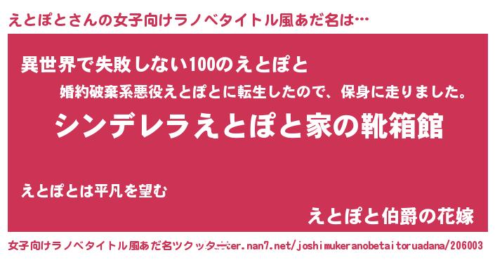 | 男性向けラノベタイトル風あだ名 | 『緋弾のエトポト』 |