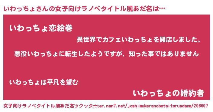 | 胡散臭い通販商品みたいなあだ名 | 『あなたにだけ特別に提供する世界で10本だけ現存している希少なブランデー…その名も「いわっちょ」』 |