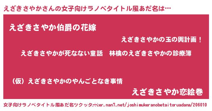 | 意味不明あだ名 | 『住所不定無職えざきさやか(74歳)』 |