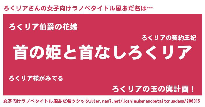 | 男性向けラノベタイトル風あだ名 | 『はたらくろくリアさま!』 |