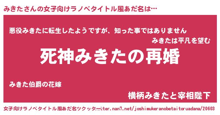 男性向けラノベタイトル風あだ名 | 『ノーゲーム・ノーミキタ』 |