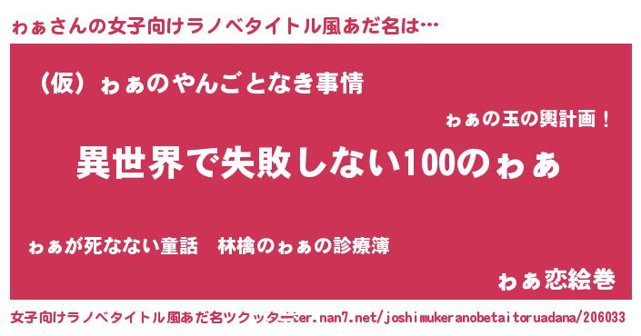 | 男性向けラノベタイトル風あだ名 | 『ゎぁという概念が存在しない退屈な世界 』 |